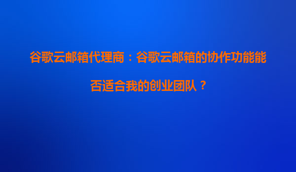 2025-08-30谷歌云邮箱代理商:谷歌云邮箱的协作功能能否适合我的创业团队? 在当今快节奏的商业环境中,高效的团队协作是创业公司成功的关键因素之一。谷歌云邮箱(GmailforBusiness)作为谷歌云服务的一部分,不仅提供...