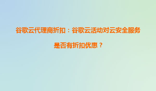 2025-08-29谷歌云代理商折扣:谷歌云活动对云安全服务是否有折扣优惠? 谷歌云的优势 谷歌云(GoogleCloud)作为全球领先的云计算服务提供商之一,凭借其强大的技术实力...