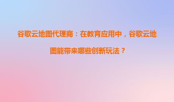 2025-08-29谷歌云地图代理商:在教育应用中,谷歌云地图能带来哪些创新玩法? 引言 随着教育信息化的快速发展,地理信息技术(GIS)在教育领域的应用越来越广泛。谷歌云地图作为全球领先的地理信息服务平台,结合谷歌...
