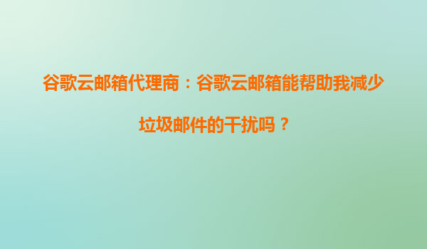 2025-08-28谷歌云邮箱代理商:谷歌云邮箱能帮助我减少垃圾邮件的干扰吗? 在当今数字化时代,电子邮件已成为企业和个人日常沟通的重要工具。然而,随之而来的垃圾邮件问题也日益严重,不仅浪费了用户的时间,还可能带来安...