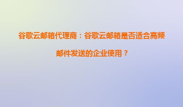 2025-08-28谷歌云邮箱代理商:谷歌云邮箱是否适合高频邮件发送的企业使用? 一、谷歌云邮箱的核心优势 谷歌云邮箱(GoogleWorkspace)作为企业级邮件服务,依托谷歌强大的基础设施和技术能力,具备以下核心优势...