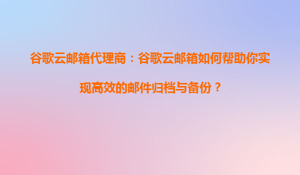 2025-08-27谷歌云邮箱代理商:谷歌云邮箱如何帮助你实现高效的邮件归档与备份? 在当今数字化时代,电子邮件已成为企业和个人日常沟通的重要工具。然而,随着邮件数量的不断增加,如何高效地归档和备份邮件成为了一个亟待...