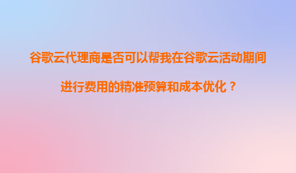 2025-11-05谷歌云代理商如何助力活动期间精准预算与成本优化 在数字化转型浪潮中,企业上云已成为提升竞争力的关键。作为全球领先的云服务提供商,谷歌云以其强大的技术实力和灵活的计费模式,为企业提供了高效、安全的云端解...