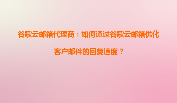 谷歌云邮箱代理商:如何通过谷歌云邮箱优化客户邮件的回复速度? 一、谷歌云邮箱的核心优势 谷歌云邮箱(GmailforBusiness)作为企业级邮件解决方案,凭借其高效、安全和智能化的特性,成为优化客户邮件...