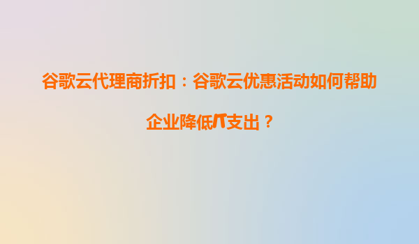 2025-08-27谷歌云代理商折扣:谷歌云优惠活动如何帮助企业降低IT支出? 在数字化转型的浪潮中,云计算已成为企业提升效率、降低成本的核心工具。作为全球领先的云服务提供商之一,谷歌云(GoogleCloud)凭借其强大的技...
