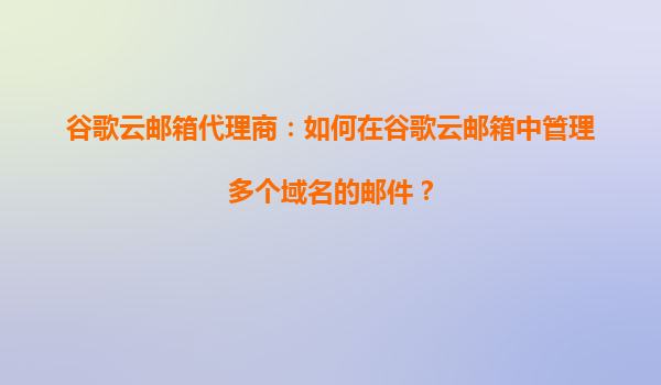 谷歌云邮箱代理商:如何在谷歌云邮箱中管理多个域名的邮件? 在当今数字化时代,企业通常需要管理多个域名的邮件系统,以满足不同业务需求或品牌推广的要求。谷歌云邮箱(GoogleWorkspace)作为全球领先的企业...