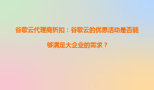 2025-08-26谷歌云代理商折扣:谷歌云的优惠活动是否能够满足大企业的需求? 一、谷歌云的核心优势 谷歌云(GoogleCloud)作为全球领先的云计算服务提供商,凭借其强大的技术实力和丰富的产品线,为企业提供...