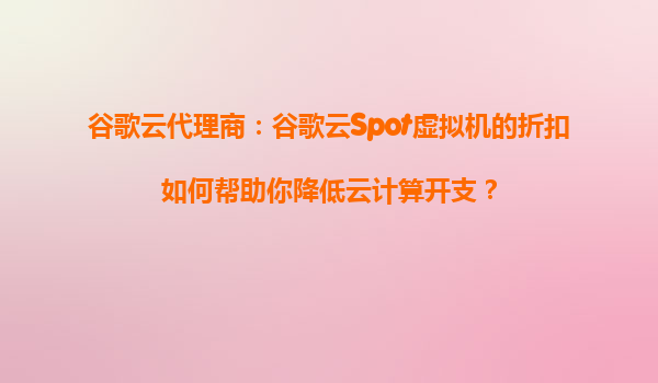 2025-08-26谷歌云代理商:谷歌云Spot虚拟机的折扣如何帮助你降低云计算开支? 一、谷歌云的核心优势 谷歌云(GoogleCloudPlatform,GCP)作为全球领先的云计算服务提供商,凭借其强大的基础设施、灵活的计费模式和...