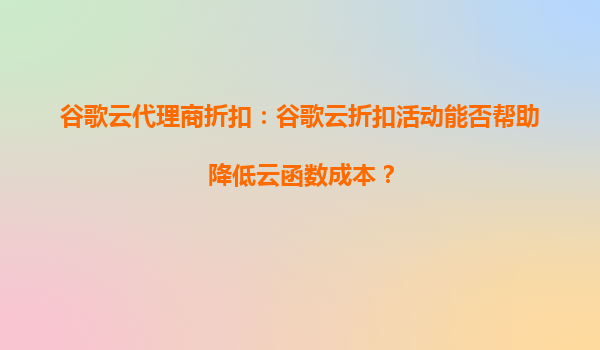 2025-08-25谷歌云代理商折扣:谷歌云折扣活动能否帮助降低云函数成本? 在当今数字化时代,云计算已成为企业IT基础设施的核心组成部分。谷歌云(GoogleCloud)作为全球领先的云服务提供商之一,凭借其强大的技术实力和...