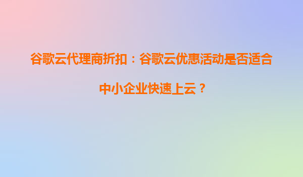 谷歌云代理商折扣:谷歌云优惠活动是否适合中小企业快速上云? 一、谷歌云的核心优势解析 谷歌云(GoogleCloudPlatform,GCP)作为全球领先的云计算服务提供商,凭借其技术实力和生态整合能力,为...