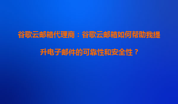 2025-08-24谷歌云邮箱代理商:谷歌云邮箱如何帮助我提升电子邮件的可靠性和安全性? 一、谷歌云邮箱的可靠性保障 谷歌云邮箱(GoogleWorkspace)依托谷歌全球基础设施,通过以下机制确保电子邮件的稳定投递与高可用...