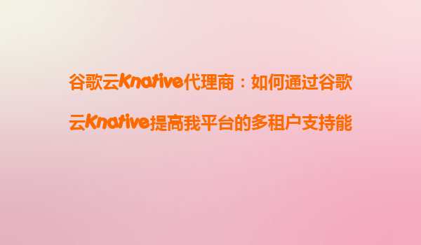 2025-08-24谷歌云Knative代理商:如何通过谷歌云Knative提高平台的多租户支持能力 引言 在当今云计算和微服务架构盛行的时代,多租户支持能力已成为企业平台的核心需求之一。谷歌云Knative作为一款...