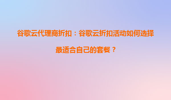 谷歌云代理商折扣:如何选择最适合自己的套餐? 一、谷歌云的核心优势 在选择云服务套餐前,首先需要了解谷歌云(GoogleCloudPlatform,GCP)的独特优势: 全球基础设施:覆...