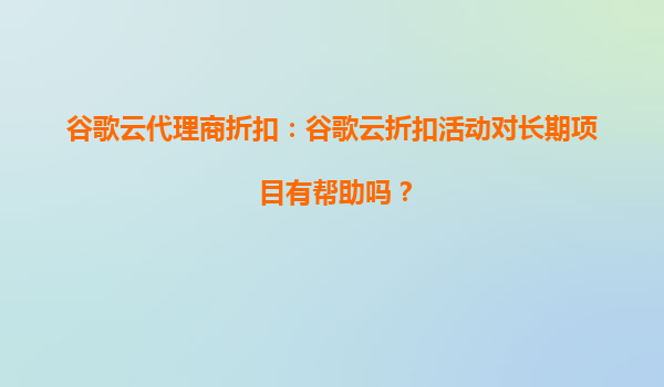 2025-08-23谷歌云代理商折扣:谷歌云折扣活动对长期项目有帮助吗? 在当今数字化时代,云计算已成为企业运营和项目开发的核心基础设施。谷歌云(GoogleCloud)作为全球领先的云服务提供商之一,凭借其强大的技术实力和...