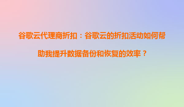 2025-08-23谷歌云代理商折扣:谷歌云的折扣活动如何帮助我提升数据备份和恢复的效率? 一、谷歌云的核心优势与数据管理能力 谷歌云(GoogleCloud)凭借其全球基础设施、高性能存储解决方案和智能化工具,为企业提供...