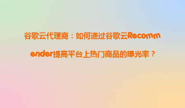 谷歌云代理商:如何通过谷歌云Recommender提高平台上热门商品的曝光率? 引言 在当今竞争激烈的电商环境中,提高热门商品的曝光率是每个平台运营者的核心目标之一。谷歌云(GoogleCloud)作为全球领先的云...