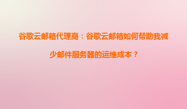 2025-08-22谷歌云邮箱代理商:谷歌云邮箱如何帮助我减少邮件服务器的运维成本? 引言 在当今数字化时代,电子邮件是企业沟通的核心工具之一。然而,维护自建邮件服务器不...