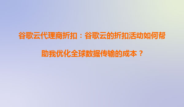 谷歌云代理商折扣:谷歌云的折扣活动如何帮助我优化全球数据传输的成本? 一、谷歌云在全球数据传输中的核心优势 谷歌云凭借其全球基础设施网络和先进技术,为企业提供了高效、稳定的全球数据传输解决方案。...