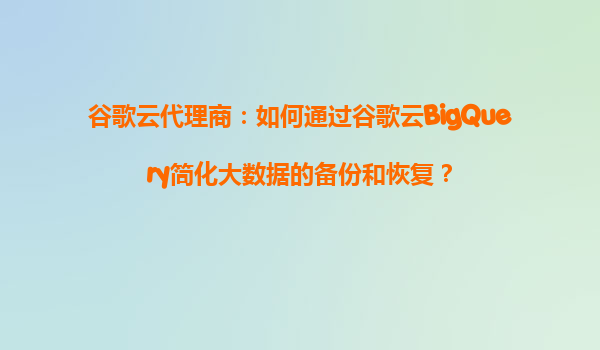 2025-08-21谷歌云代理商:如何通过谷歌云BigQuery简化大数据的备份和恢复? 引言 在大数据时代,企业面临着海量数据的存储、分析和备份恢复挑战。谷歌云的BigQuery作为一款全托管的企业级数据仓库,以其无服...