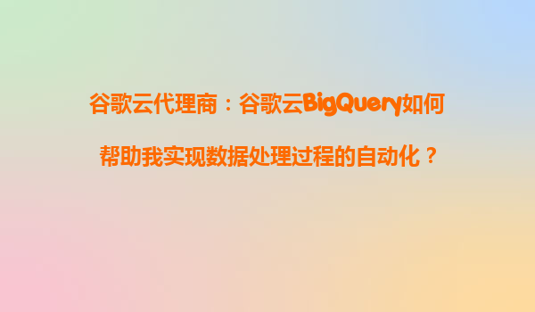 2025-08-21谷歌云代理商:谷歌云BigQuery如何帮助实现数据处理自动化 在数字化浪潮中,企业需要高效处理海量数据以满足业务需求。谷歌云BigQuery作为一款全托管的数据仓库解决方案,凭借其强大的自动化能...