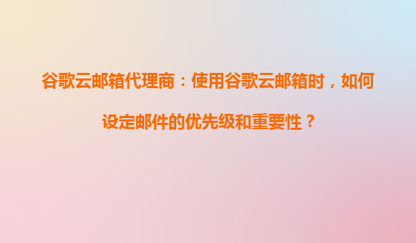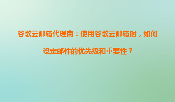 2025-08-21谷歌云邮箱代理商指南:如何设定邮件的优先级和重要性 前言 在当今快节奏的商业环境中,高效的电子邮件管理是企业和个人提升生产力的关键。谷歌云邮箱(GoogleWorkspace中的Gmail)作为全球...