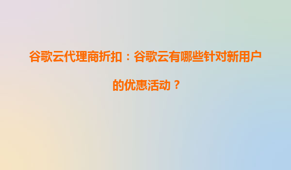2025-08-20谷歌云代理商折扣指南:新用户专属优惠与双赢优势解析 一、谷歌云新用户优惠活动大全 谷歌云(GoogleCloud)为吸引新用户,推出了多项极具吸引力的优惠政策: 1.新用户免费试用计划 300美元...
