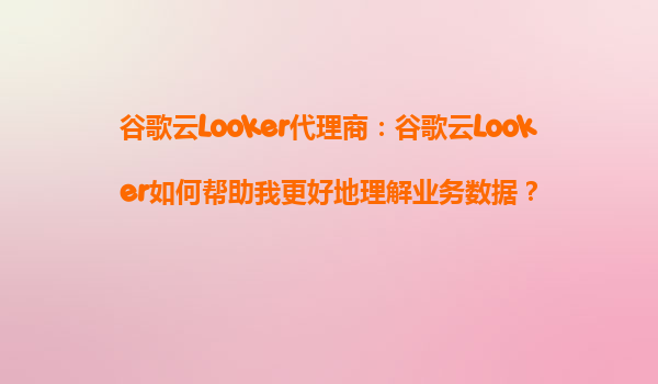 2025-08-19谷歌云Looker代理商:谷歌云Looker如何帮助我更好地理解业务数据? 引言 在当今数据驱动的商业环境中,企业需要更高效、直观的方式来分析和理解业务数据。谷歌...