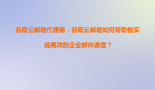 2025-08-19谷歌云邮箱代理商:谷歌云邮箱如何帮助我实现高效的企业邮件通信? 在当今数字化时代,高效的邮件通信是企业运营中不可或缺的一部分。谷歌云邮箱(GmailforBusiness)作为全球领先的企业邮件解决方...