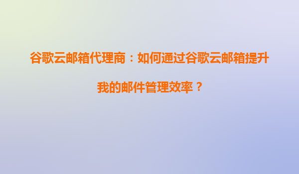 2025-08-19谷歌云邮箱代理商:如何通过谷歌云邮箱提升邮件管理效率? 引言 在数字化办公时代,高效的邮件管理是企业沟通和协作的核心。谷歌云邮箱(GmailforBusiness)...