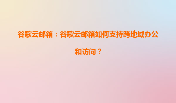 2025-08-18谷歌云邮箱:如何支持跨地域办公和访问? 引言 在全球化背景下,企业团队分布在不同地区已成为常态。如何实现高效、安全的跨地域协作成为企业亟需解决的问题。谷歌云邮箱(GoogleWorkspace中的Gmail)凭借...
