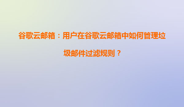 2025-08-17谷歌云邮箱:用户在谷歌云邮箱中如何管理垃圾邮件过滤规则? 一、谷歌云邮箱的垃圾邮件过滤机制简介 谷歌云邮箱(Gmail作为核心服务)依托谷歌强大的AI技术和云计算资源,其垃圾邮件过滤...