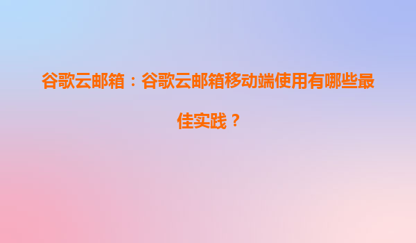 2025-08-17谷歌云邮箱移动端使用最佳实践及代理商优势解析 一、谷歌云邮箱移动端的核心优势 谷歌云邮箱(GmailforGoogleWorkspace)作为全球领先的企业级邮件解决方案,在移动办公场景中表现突出: ...