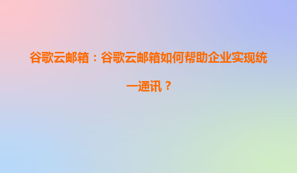 2025-08-17谷歌云邮箱如何帮助企业实现统一通讯? 引言 在数字化时代,企业内部沟通效率直接影响业务运营的顺畅程度。谷歌云邮箱(GoogleWorkspace中的Gmail)作为一款整合了邮件、即时通讯、视频会议和文件协作功能...