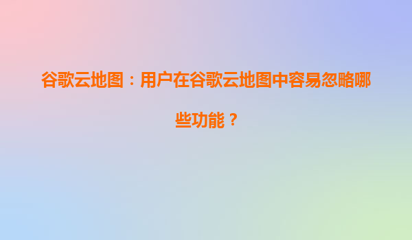 2025-08-17谷歌云地图:用户在谷歌云地图中容易忽略哪些功能? 引言 谷歌云地图(GoogleMapsPlatform)作为全球领先的地理空间服务提供商,凭借其强大的数据整合能力和灵活的API接口,为企业和开发者提供了丰富的工具。然...