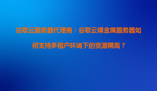 2025-08-16谷歌云服务器代理商:谷歌云裸金属服务器如何支持多租户环境下的资源隔离? 引言 在多租户云计算环境中,资源隔离是确保安全性、性能稳定性和合规性的关键。作为全球领先的云服务提供商,谷...