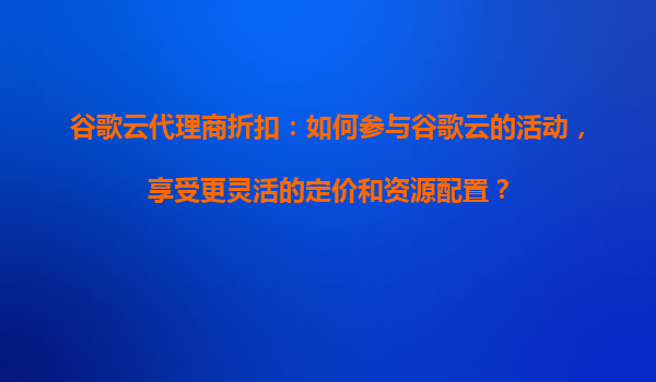 2025-08-15谷歌云代理商折扣:如何参与谷歌云的活动,享受更灵活的定价和资源配置? 一、为什么选择谷歌云? 谷歌云(GoogleCloud)作为全球领先的云计算服务提供商,以...