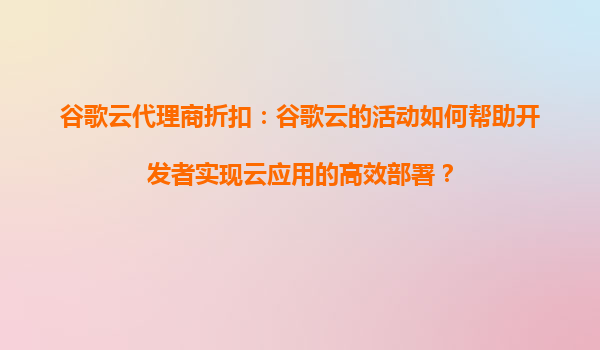 2025-08-15谷歌云代理商折扣:云应用全球化的关键助力 通过谷歌云代理商获取专属折扣,结合谷歌云的全球基础设施和先进技术,企业能够以更低的成本实现云应用的全球化部署,显著提升业务的可访问性和竞争力。 一、全球基础设...