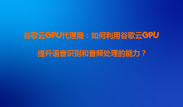 2025-08-14谷歌云GPU代理商:如何利用谷歌云GPU提升语音识别和音频处理的能力? 引言 在人工智能和机器学习飞速发展的今天,语音识别和音频处理技术已经深入到我们生活的方方面面——从智能助...