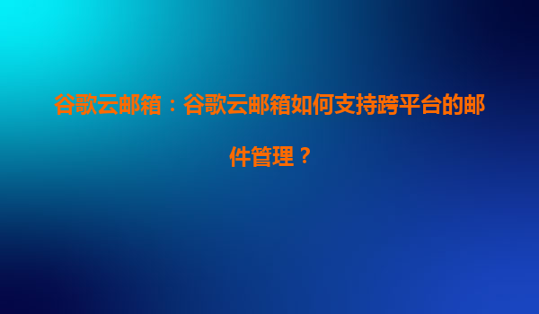 2025-08-14谷歌云邮箱如何支持跨平台的邮件管理 一、无缝的多设备同步体验 谷歌云邮箱(Gmail)通过云端技术实现多终端实时同步,用户无论使用Windows、Mac、iOS还是Android设备,登录同一账号即可随时访问最新邮件。...