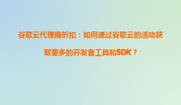 2025-08-14谷歌云代理商折扣:如何通过谷歌云的活动获取更多的开发者工具和SDK? 在当今快速发展的云计算领域,谷歌云(GoogleCloud)凭借其强大的技术实力和丰富的开发者资源,成为众多企业和开发者的首选平台之一。如果...