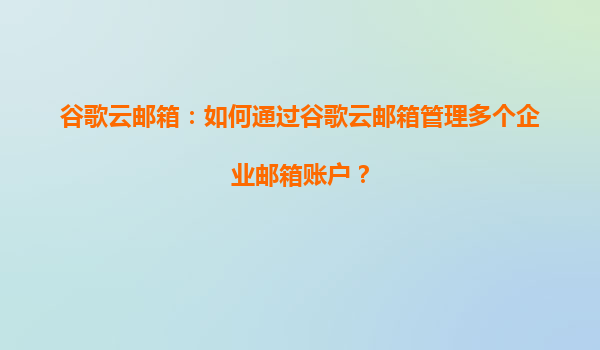 2025-08-13谷歌云邮箱:如何通过谷歌云邮箱管理多个企业邮箱账户? 一、谷歌云邮箱的核心优势 谷歌云邮箱(GoogleWorkspace)作为企业级邮箱解决方案,具备以下核心优势: 多账号统一管理:通过单...