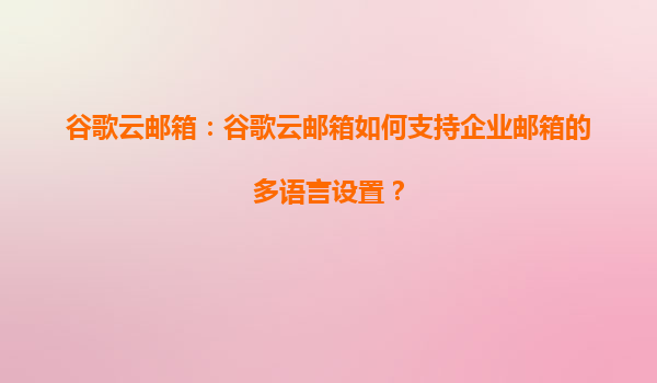 谷歌云邮箱如何支持企业邮箱的多语言设置? 一、谷歌云邮箱的企业级多语言支持概述 谷歌云邮箱(GoogleWorkspace)作为全球领先的企业邮箱解决方案,天然支持多语言环境。企业用户可通过统一...