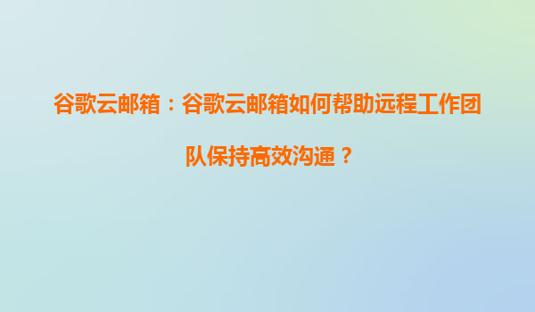 谷歌云邮箱:谷歌云邮箱如何帮助远程工作团队保持高效沟通? 引言 随着远程工作的普及,高效沟通工具成为团队协作的关键。谷歌云邮箱(Gmail)作为谷歌云(GoogleCloud)的核心服务之一,凭借其强大的功能...