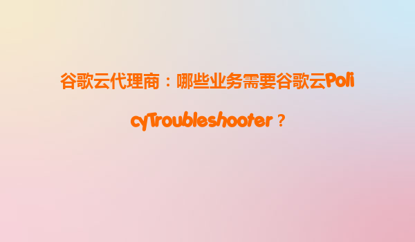 2025-08-13谷歌云代理商:哪些业务需要谷歌云PolicyTroubleshooter? 引言 在当今数字化时代,企业越来越依赖云计算平台来管理其业务和数据。谷歌云(GoogleCloud)作为全球领先的云服务提供商之...