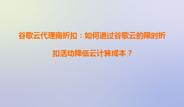 2025-08-13谷歌云代理商折扣:如何通过谷歌云的限时折扣活动降低云计算成本? 谷歌云的核心优势与竞争力 谷歌云作为全球领先的云计算服务提供商,凭借其强大的基础设施、技术创新能力和灵活的定价模式,为企业用户提...