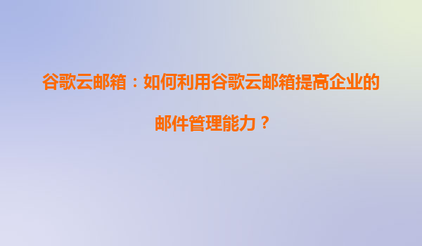 2025-08-13谷歌云邮箱:谷歌云邮箱如何帮助企业快速应对业务沟通需求? 一、引言:现代企业沟通的挑战与需求 在全球化与数字化浪潮下,企业需要高效、安全且灵活的沟通工具来应对复杂业务场景。传统邮箱系统往往面临...