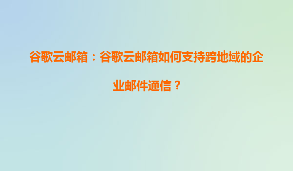 2025-08-12谷歌云邮箱的跨地域企业邮件通信支持 谷歌云邮箱(GoogleWorkspace)作为全球领先的企业邮件解决方案,通过其强大的云计算基础设施和智能化的服务设计,为跨国企业及分布式团队提供了无缝的跨地域邮件通信能力。无...