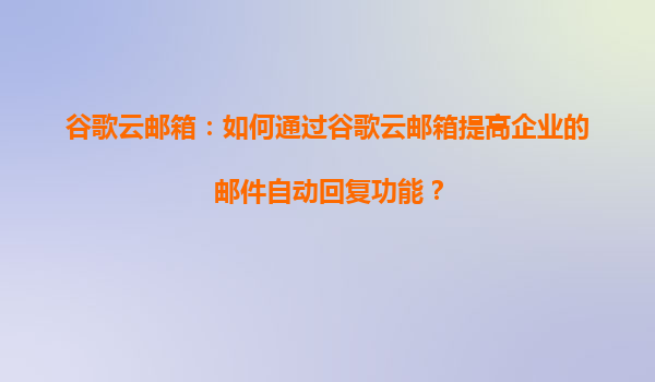 谷歌云邮箱:如何通过谷歌云邮箱提升企业的邮件自动回复功能 引言 在当今快节奏的商业环境中,高效的邮件沟通是企业成功的关键因素之一。谷歌云邮箱(GoogleWorkspace中的Gmail服务)不仅提供专业的邮件解决方...