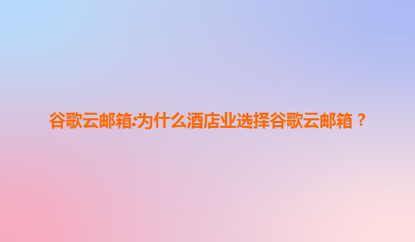 2025-08-09为什么酒店业选择谷歌云邮箱? 一、酒店业的数字化转型需求 随着全球旅游业的复苏和消费者对个性化服务的需求增长,酒店行业正加速数字化转型。高效的沟通工具成为提升客户体验、优化内部协作的关键。谷歌...