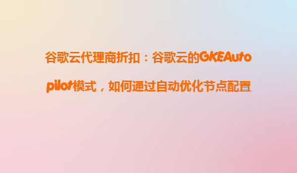2025-11-01谷歌云代理商折扣:谷歌云的GKEAutopilot模式如何通过自动优化节点配置来节省费用? 1.GKEAutopilot模式简介 GKEAutopilot是谷歌云(GoogleCloud)推出的一种完全托管的Kubernetes服务模式。...